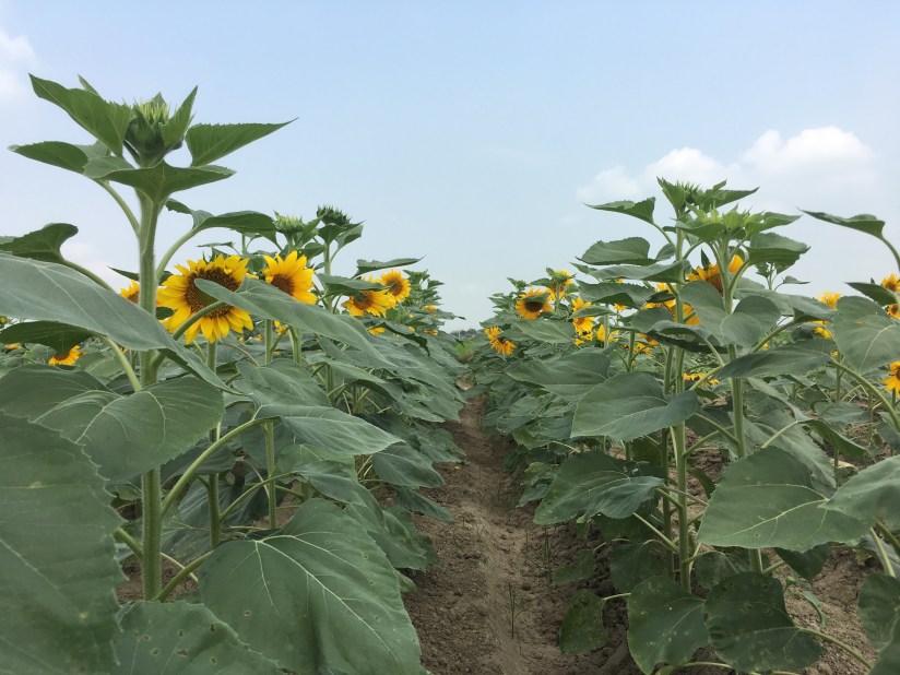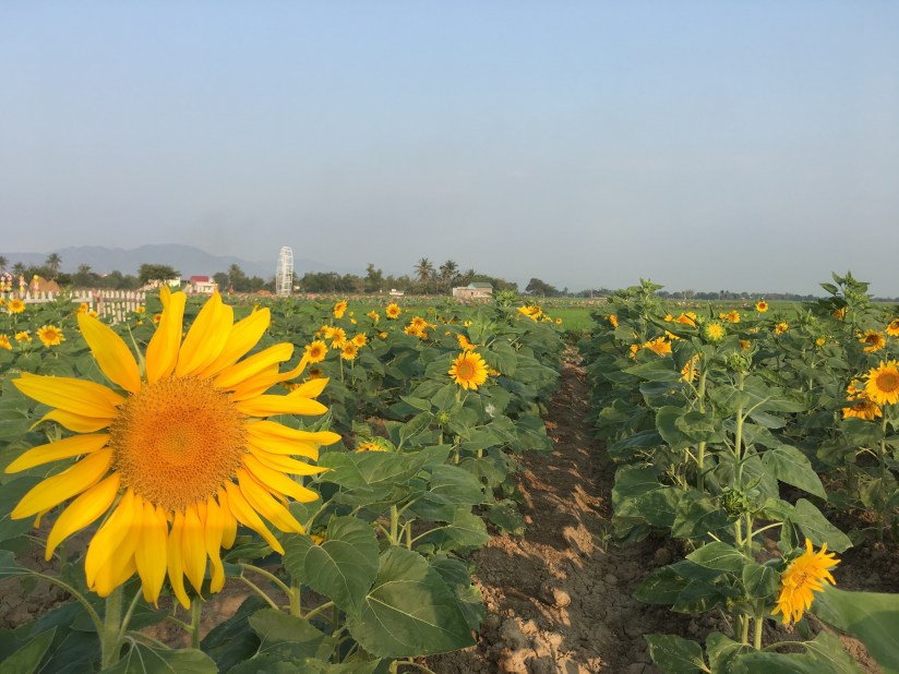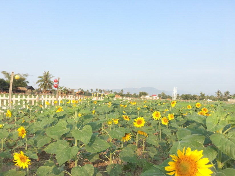 Mảnh đất miền Trung nắng gió lại là địa điểm rất thích hợp cho loài hoa ưa nắng như hướng dương phát triển. Những bông hoa vàng rực trên thảm lá xanh chính là cảm hứng cho rất nhiều tay máy chuyên nghiệp và nghiệp dư cũng như những thiếu nữ kéo về đây tranh thủ từng khoảnh khắc hoa vừa nở.